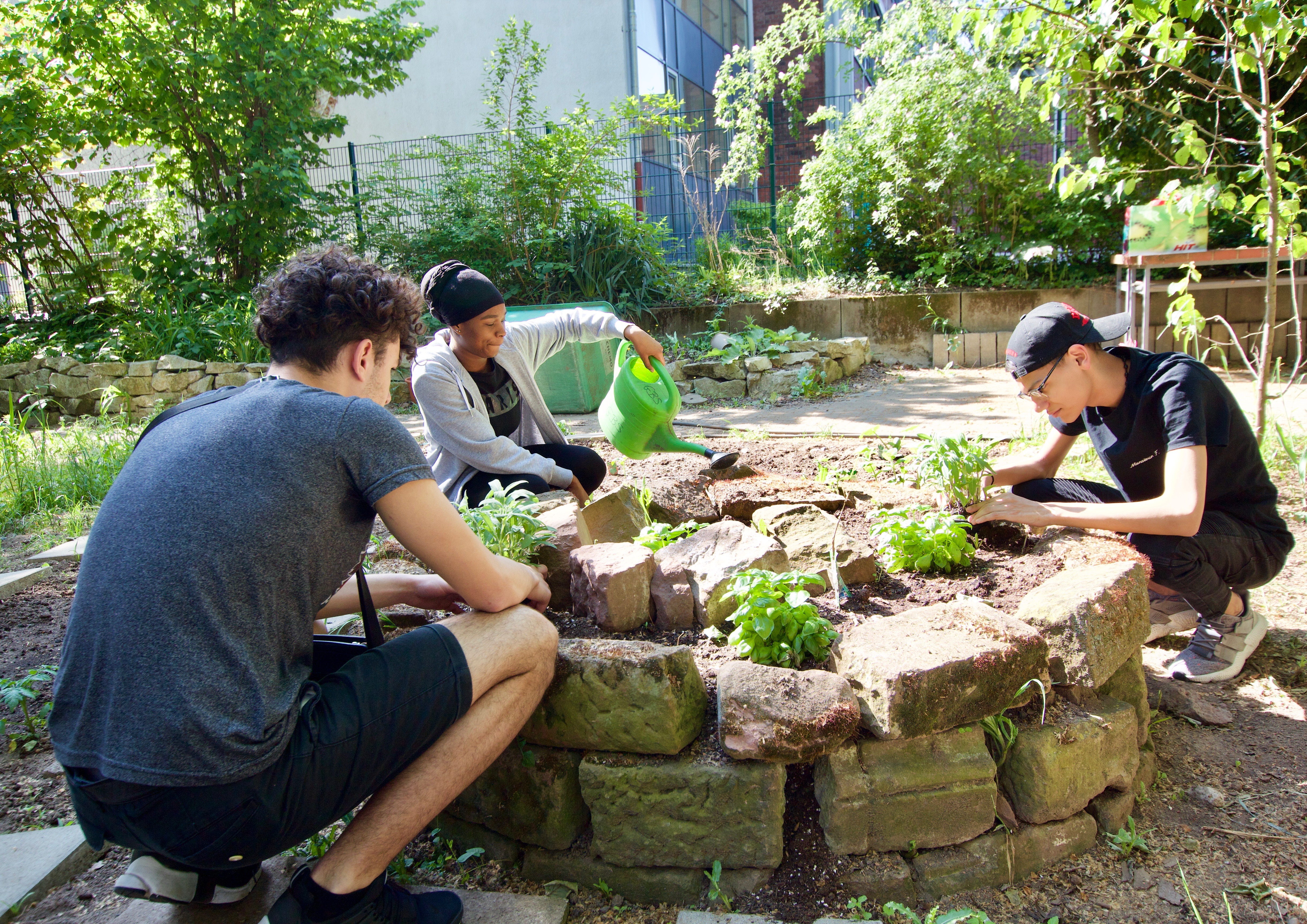 In unserem Schulgarten mitten in der Stadt kann fleißig gegärtnert werden